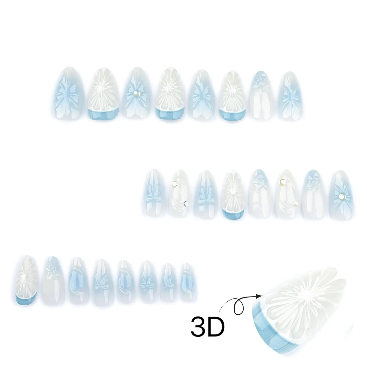 Simply file your nails, select the appropriate size, put adhesive or jelly glue, press for a few seconds, and finish. With typical care, jelly glue allows them to last a few days; liquid glue lets them last even longer.