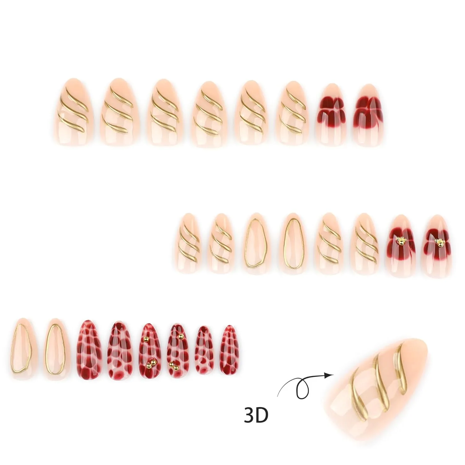 - 24 pcs almond medium press-on nails