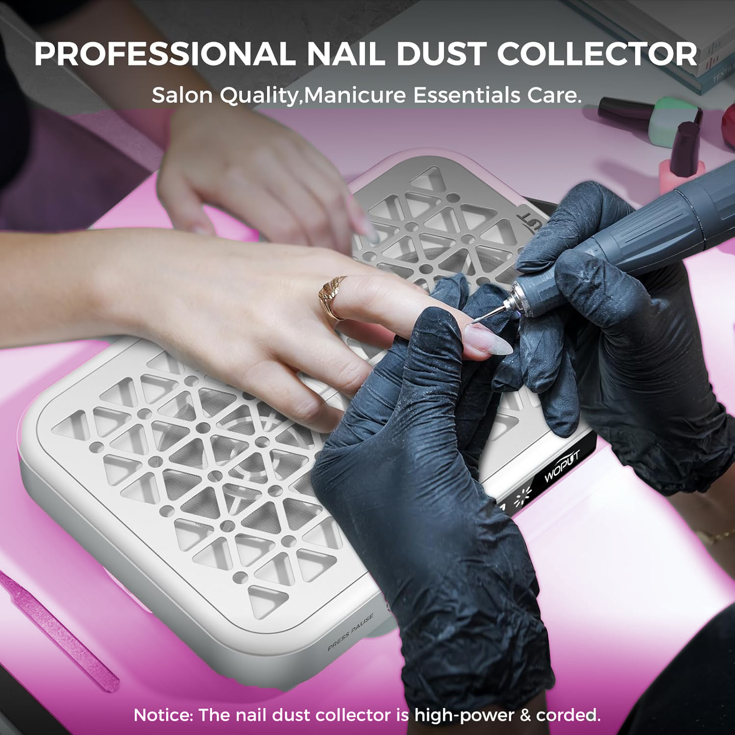After hours of filing and shaping, the one thing every nail lover dreads is the mess — clouds of dust everywhere, covering your table, tools, and even your clothes. You just finished a perfect set of acrylics, yet your space looks like a snowstorm hit it.