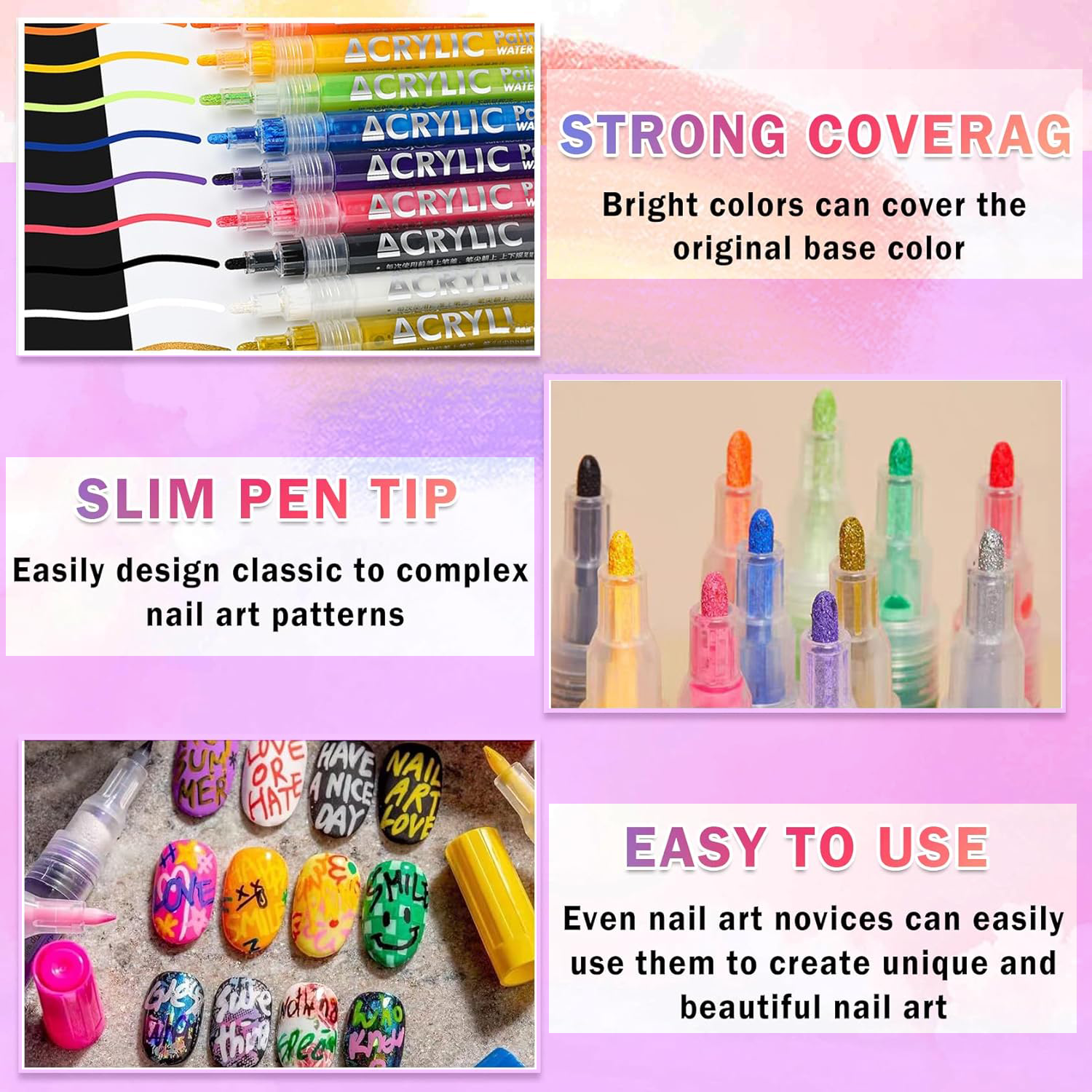 With this 12-colour nail marker set, you can make your nails an art piece. Great for nail art DIY at home or at the salon. With the precision tips, drawing, dotting, and detailed nail art become effortless. The smooth ink flow at any angle ensures seamless painting and reliable ink flow.